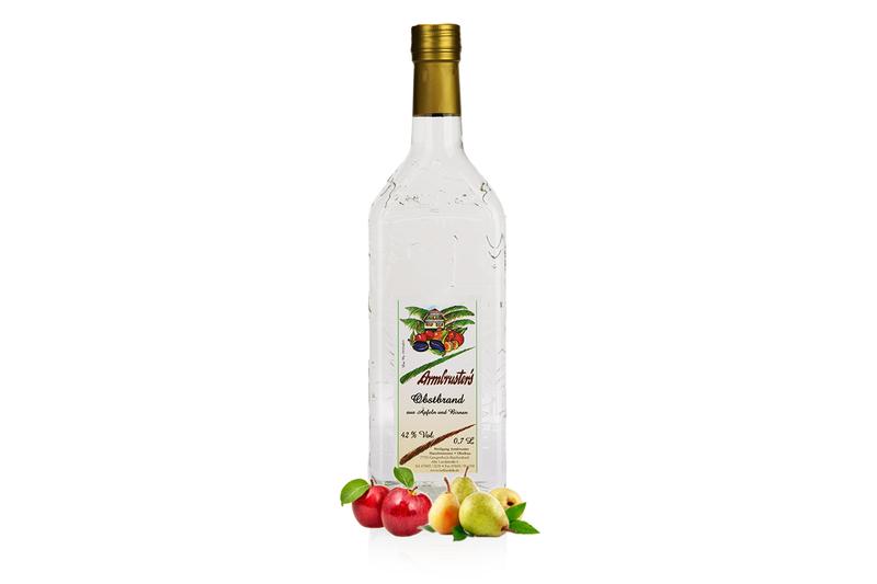 Milder Schnaps von Äpfel und Birnen aus den eigenen Anlagen für jede Gelegenheit.
